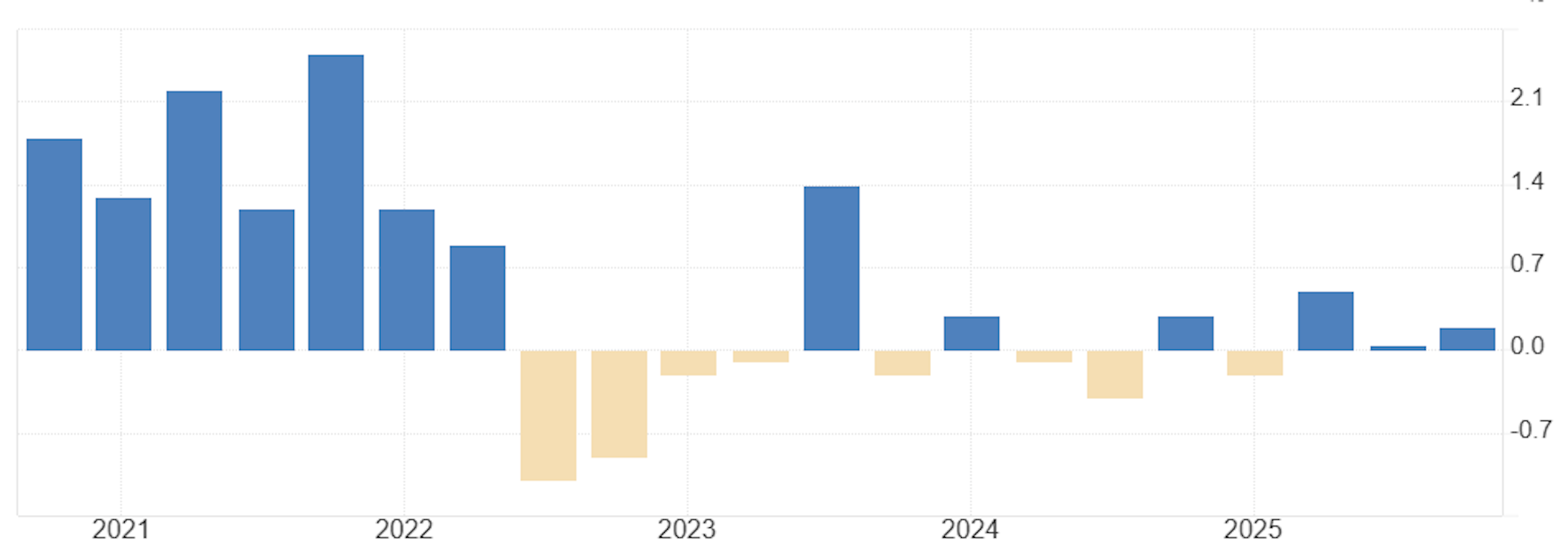 Crecimiento anual del PIB húngaro, en %. Fuente: Trading Economics, proporcionado por el autor (no reutilizar)